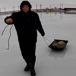 Video | Russische vissers halen reeën van bevroren meer met slee